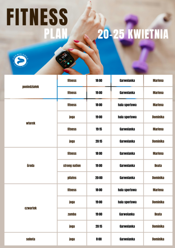 Harmonogram zajęć fitness na 20-25 kwietnia 2026 r.: