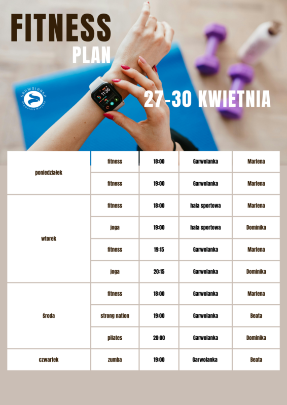 Harmonogram zajęć fitness na 27-30 kwietnia 2026r.:
