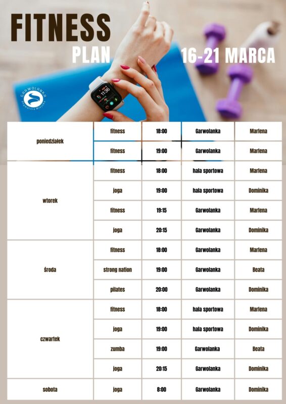 Harmonogram zajęć fitness na 16-21 marca 2026: