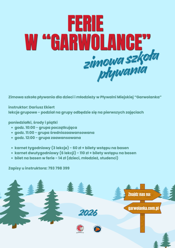 Więcej o ofercie Centrum Sportu i Kultury w Garwolinie na ferie na www.csik.garwolin.pl